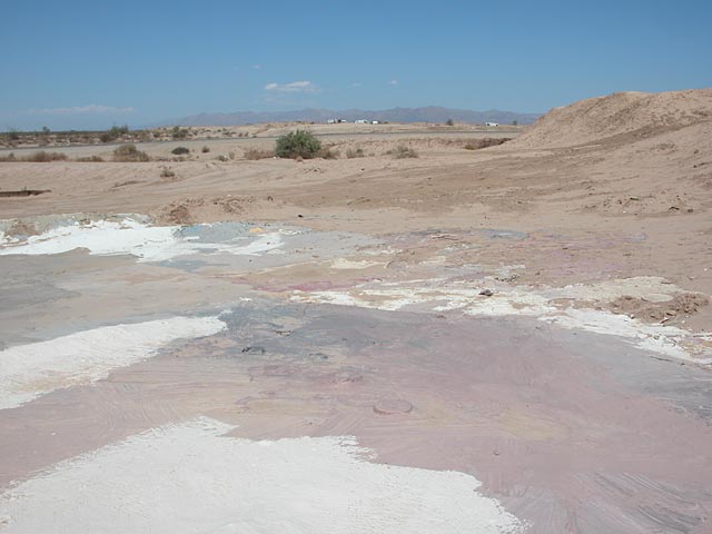 You are in a flat, blue, ocean-like area that offsets the "island" of Salvation Mountain.