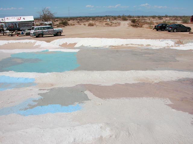 You are in a flat, blue, ocean-like area that offsets the "island" of Salvation Mountain.