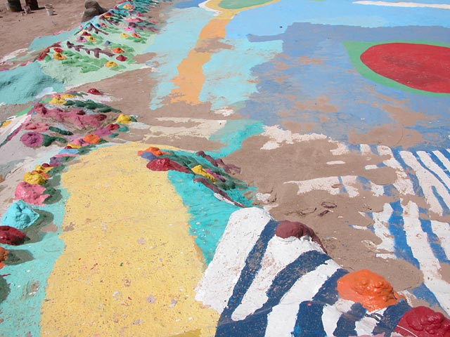 You are part-way up the side of Salvation Mountain. Pathways become rather twisty here.