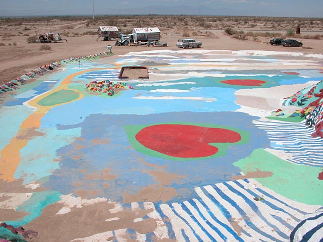 You are part-way up the side of Salvation Mountain. Pathways become rather twisty here.