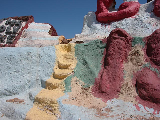 You are climbing along the top of Salvation Mountain. Pathways are rather twisty here.