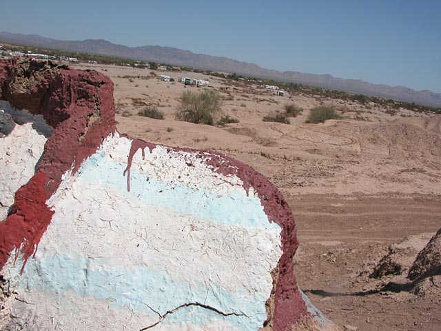 You are on top of Salvation Mountain, facing northeast. You can continue through a cranny, behind the mountain.