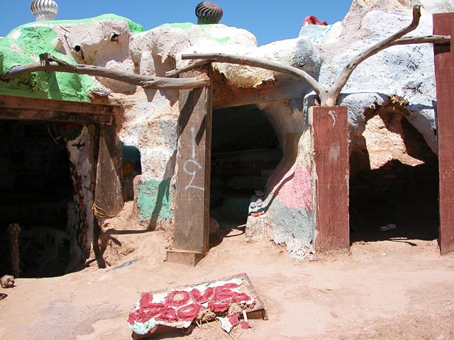 You're inside a gated cranny to the south of Salvation Mountain.