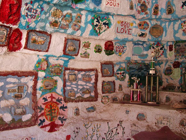 You are in a small hogan just south of Salvation Mountain. There's quite a bit of decoration in here.