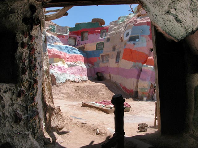 You are in a small hogan just south of Salvation Mountain. There's quite a bit of decoration in here.