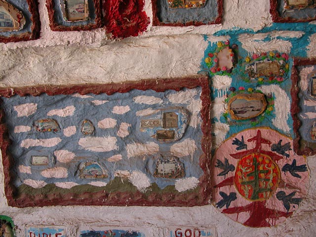 You are in a small hogan just south of Salvation Mountain. There's quite a bit of decoration in here.