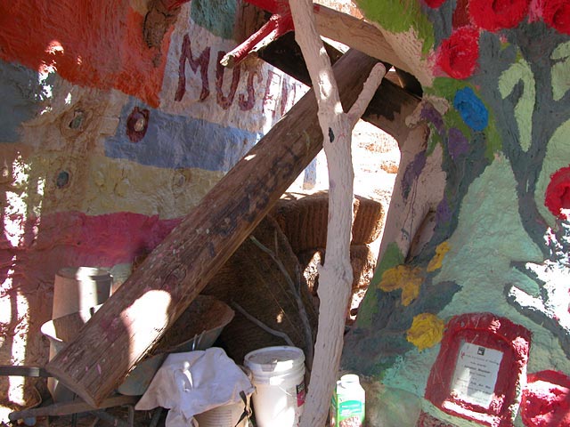 Painted words on the wall seem to indicate this is a museum. There's also a plaque affixed to the base of the tree...