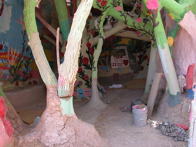 You are standing in the back entryway of an enclave south of Salvation Mountain. There are many hidden nooks and crannies around here.