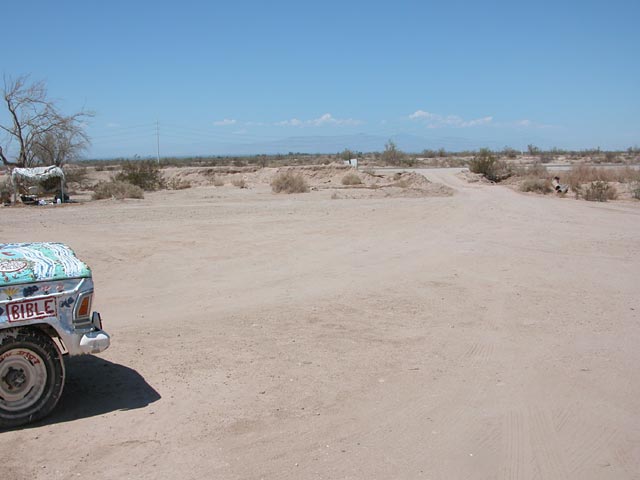 Looking west, you see the access road where you entered. If you move forward you will end up back on the highway.