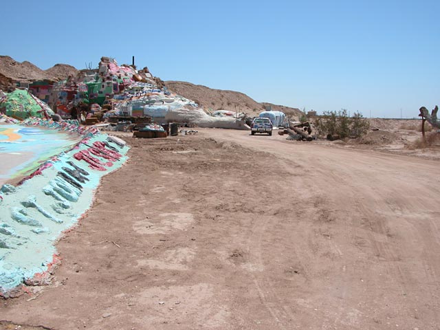 Just one turn to your left is a mailbox and an opening into the Salvation Mountain area.