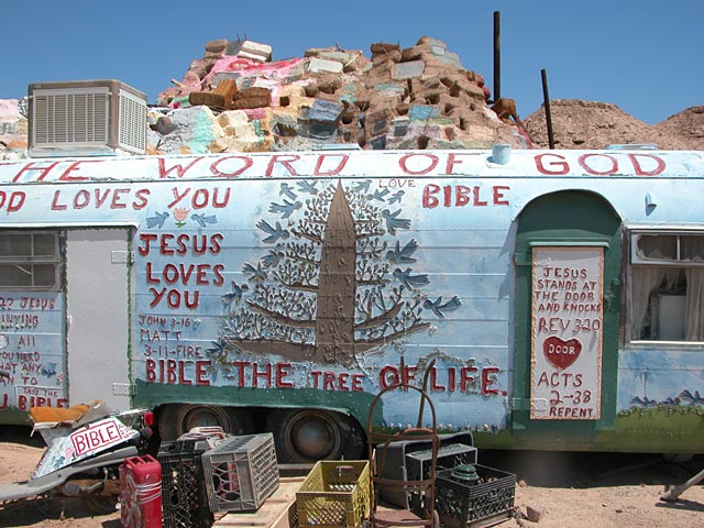 You notice the entrance to a trailer. Nobody appears to be home. Perhaps the tenant can be found elsewhere.