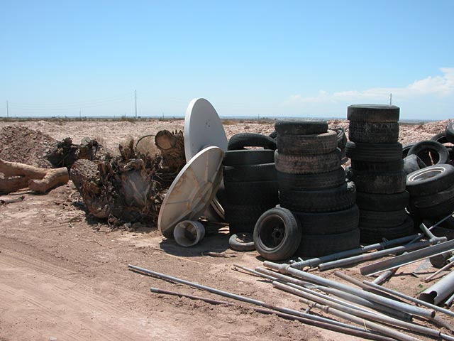 You are on a dirt road far to the southeast of Salvation Mountain. This area does not seem intended for the public.