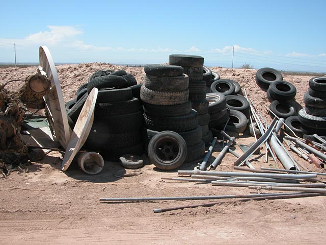 You are on a dirt road far to the southeast of Salvation Mountain. This area does not seem intended for the public.