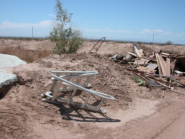 You are at the end of dirt road far to the southeast of Salvation Mountain. This seems to be where materials are prepared.