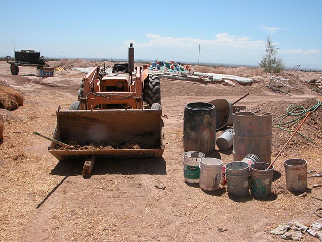 You are in a preparation area far to the southeast of Salvation Mountain. It would appear much of the mountain and surrounding areas are made out of bales of hay.