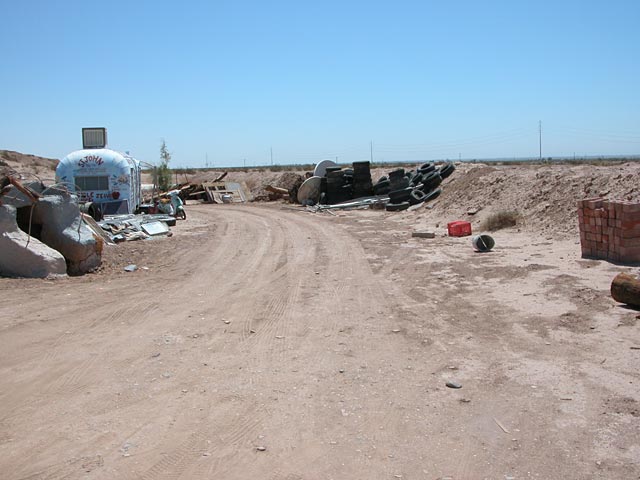 Hmm, a trailer and a pile of tires. This area must not be intended for the general public.