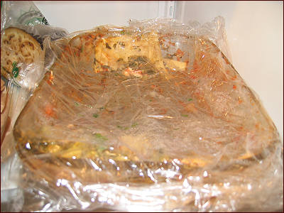 Oh man, that's nasty! How long has that been in the fridge, anyway? What a stench.